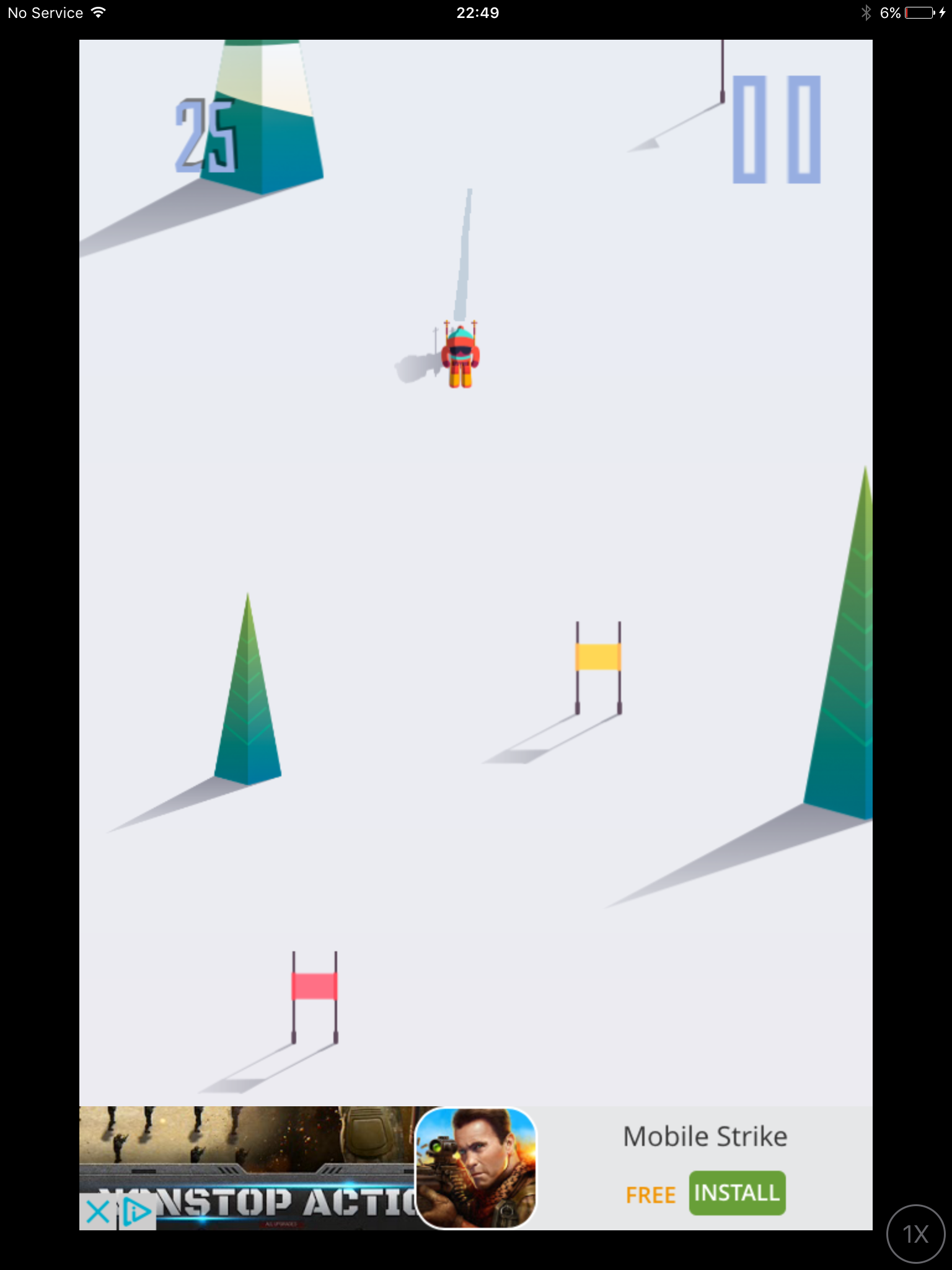 You tap it again and you change direction again. Weave through trees and buildings and get to the finish line.