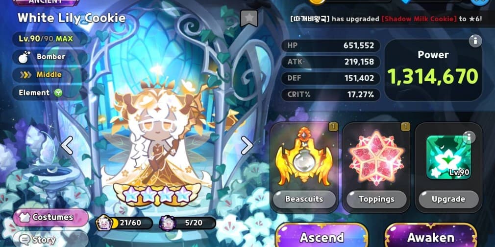 Cookie Run Kingdom: White Lily Cookie Toppings and Beascuits guide