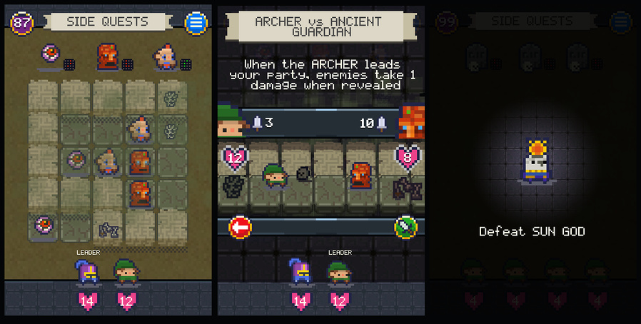 Perhaps best described as Disco Zoo with a deceptively deep RPG core, TotAC has you moving through a dungeon and defeating the end boss in 100 moves or less. You must tap on the floor tiles of each dungeon to reveal the enemies and new heroes beneath.