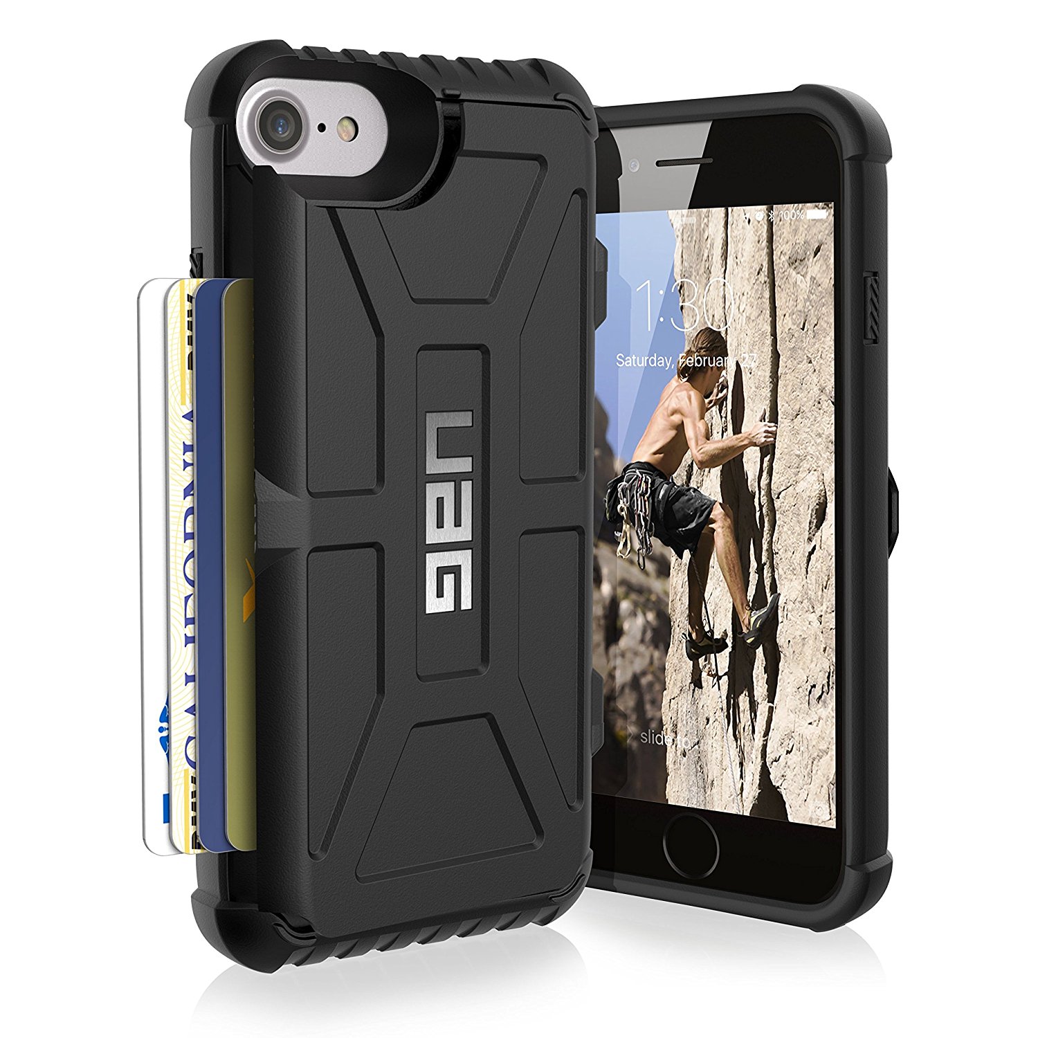 UAG makes big butch cases that can help your phone survive a pretty extreme droppage. This one is no exception, but it'll also hold your bank cards for you.