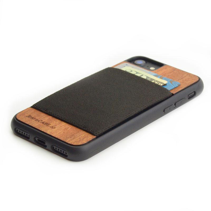 Here's a handsome, premium iPhone 7 case that stands out from the crowd. The JimmyCASE wallet incorporates a genuine mahogany back, a sturdy plastic bumper, and a stretchy elastic pocket.