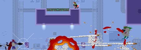 You are a soldier, sent to eliminate the evil wizard of Venus. Along the way, you'll be blasting enemies as they burst through the floor, and saving your fellow army men. There's barely any storyline, but when words do pop up, they always have a huge impact.
