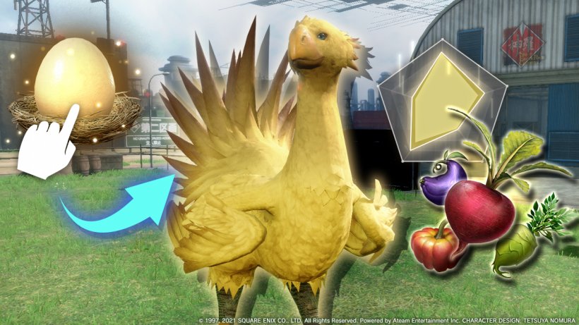 Ateam Entertainment and Square Enix have also released some new information about the battle royale today. Every player will already receive one Chocobo Egg for the 300,000 pre-registrations milestone. These can be incubated and hatched in the Chocobo Farm in order to breed them for battle. The farm can house up to seven eggs, which can be fed to increase stats like speed and HP. Raise the chicken-like creature the way it suits your play style and dress it up using skins.