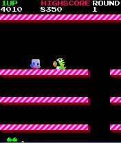 Also, on our review K750i handset the levels are too big to fit on the screen, so there's a limited amount of scrolling while you play. We assume Taito chose this route to ensure that the characters were big enough to be identifiable, but it creates problems. You can't see the top of the level, so if you fall through a hole at the bottom, to reappear at the top, there's a chance you'll land on an enemy who you didn't know was there.