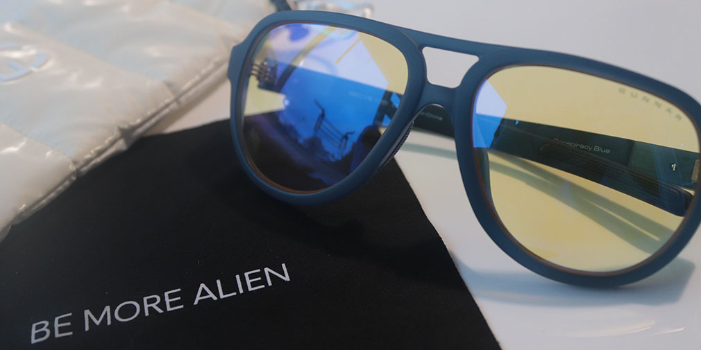 The Gunnar Roswell Alienware glasses are the first in this new series. These come in Conspiracy Blue, which is a semi-transparent, yet hard plastic (and not shiny) blue colour. The lenses themselves are on the bigger side, looking like a pair of futuristic goggles. They only have one tint, Amber, which is the best at blocking out blue light. These aim to pay homage to the legendary crash site and the secrets buried under the surface.