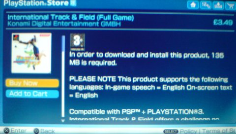 | Choose your game 1. You can find out more about any game in the store by highlighting it and pressing X. 2. This will also tell you how much space you need on your memory stick to download it. You need about twice as much as the actual size of the game file to download. 3. If you've already purchased an item, it will have the red PlayStation shopping bag icon displayed on it. 4. Once you've picked your game, either choose Buy Now if that's all you want to purchase, or Add to Cart if you want to continue shopping.  |
