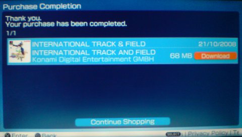 | Download your game 1. Once you've checked you've got the funds, click the Confirm Purchase button. 2. The money will be taken. You can either click the Download button now, or do it later by going to the store and selecting the View Downloads button in the top right. All your downloads are stored here, so if a download is interrupted, you can go here to start it again. 3. Your download will take a few minutes, depending on the file size. A percentage progress bar will be shown on the screen. 4. Once downloaded, the game will then automatically be stored on your PSP.  |
