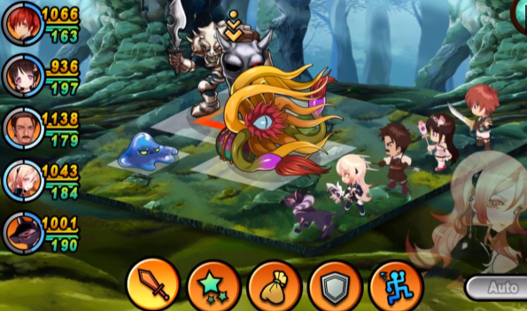 This chibi-fied RPG follows the traditional formula of youngsters feeling drawn to a higher calling. The same graphics carry through from the field to battle, which takes place on a three-quarters down floating grid.