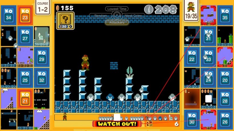 In this Tetris 99-alike you'll be running through familiar Mario stages under the threat of a timer, and taking down all manner of devious enemies, but the way in which you do so can mean the difference between life and death.