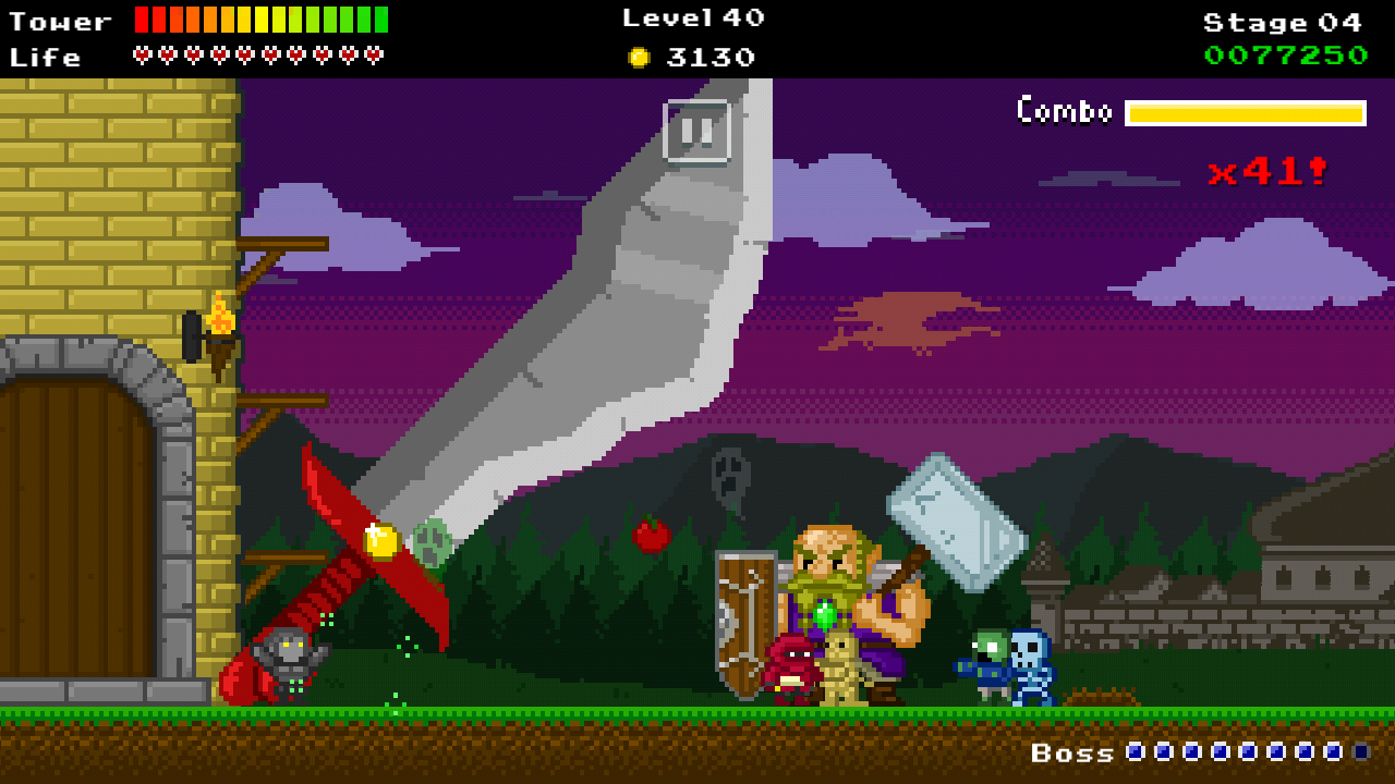 Okay, I fibbed a little. Warcher Defenders is actually a tower defence game with an 8-bit retro flare in which you (the daring hero/heroine) have to defend the tower against waves and waves of fearsome enemies.